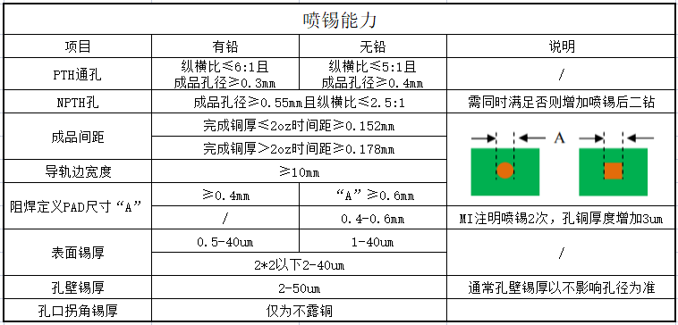 1、当板厚<0.6mm时,喷锡时因板材受热变形会锡高、锡面不平,建议客户做其他表面处理。
