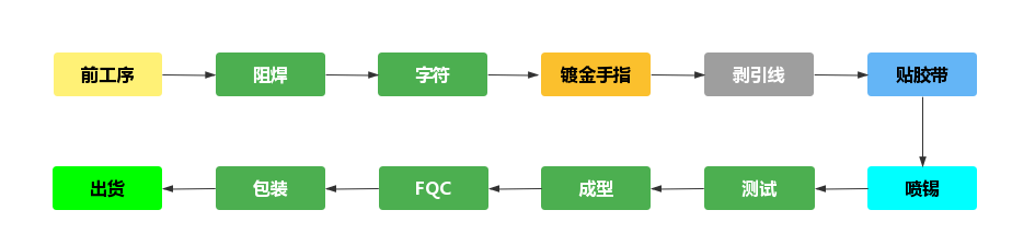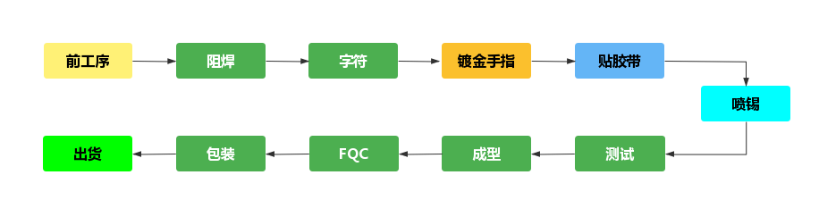 采用剥引线的方式制作外层线路和阻焊,金手指阻焊开窗与最近焊盘距离保证在1mm以上,防止金手指上锡。
